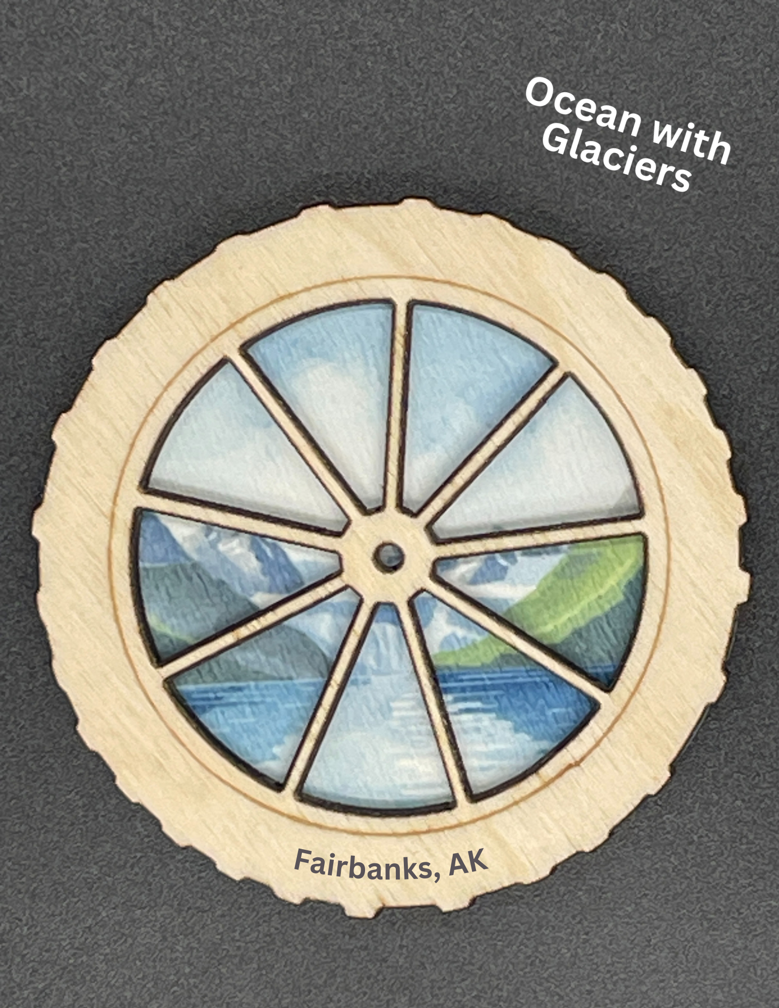 Two-Layer (neodymium) magnet featuring a bike tire on your choice of background.