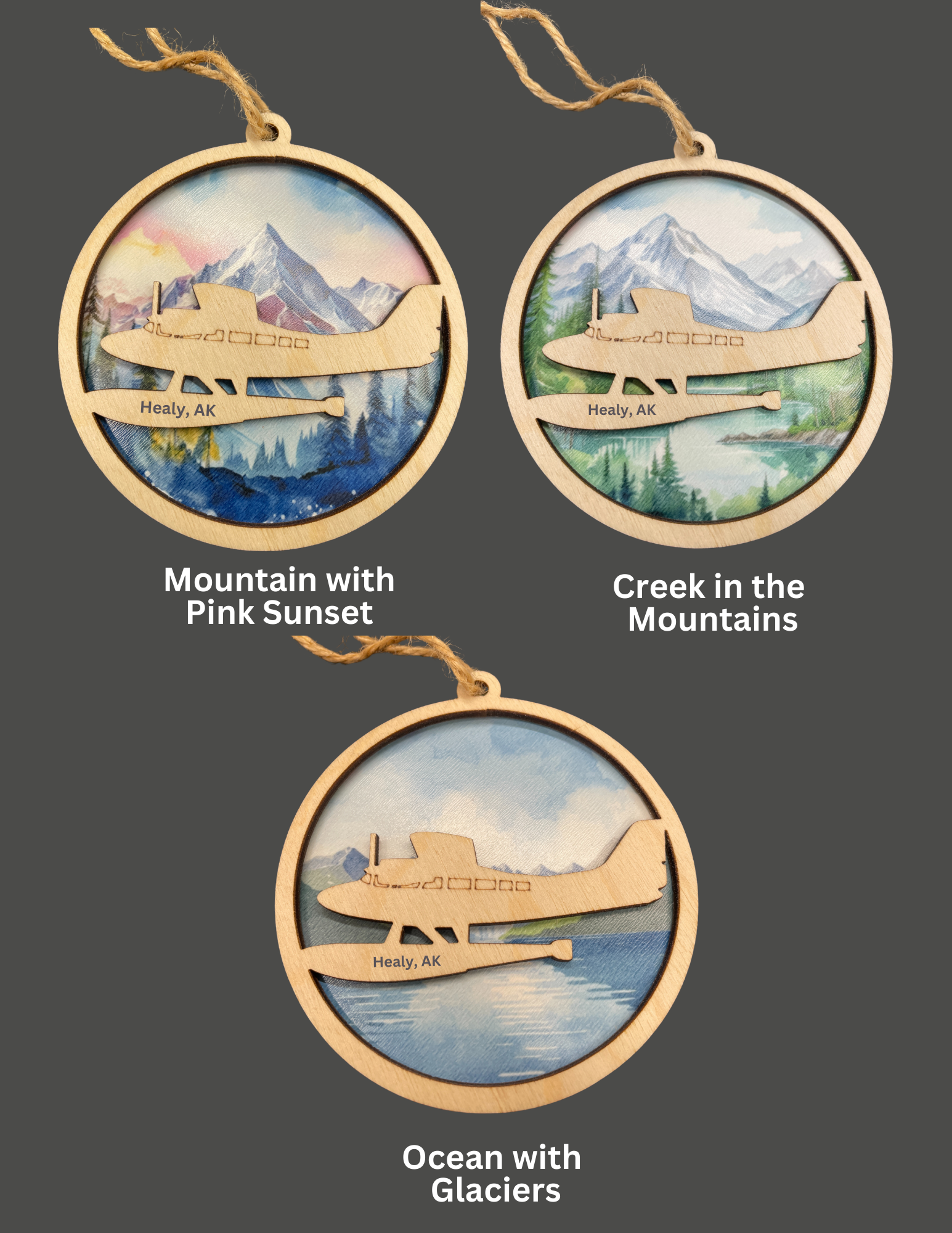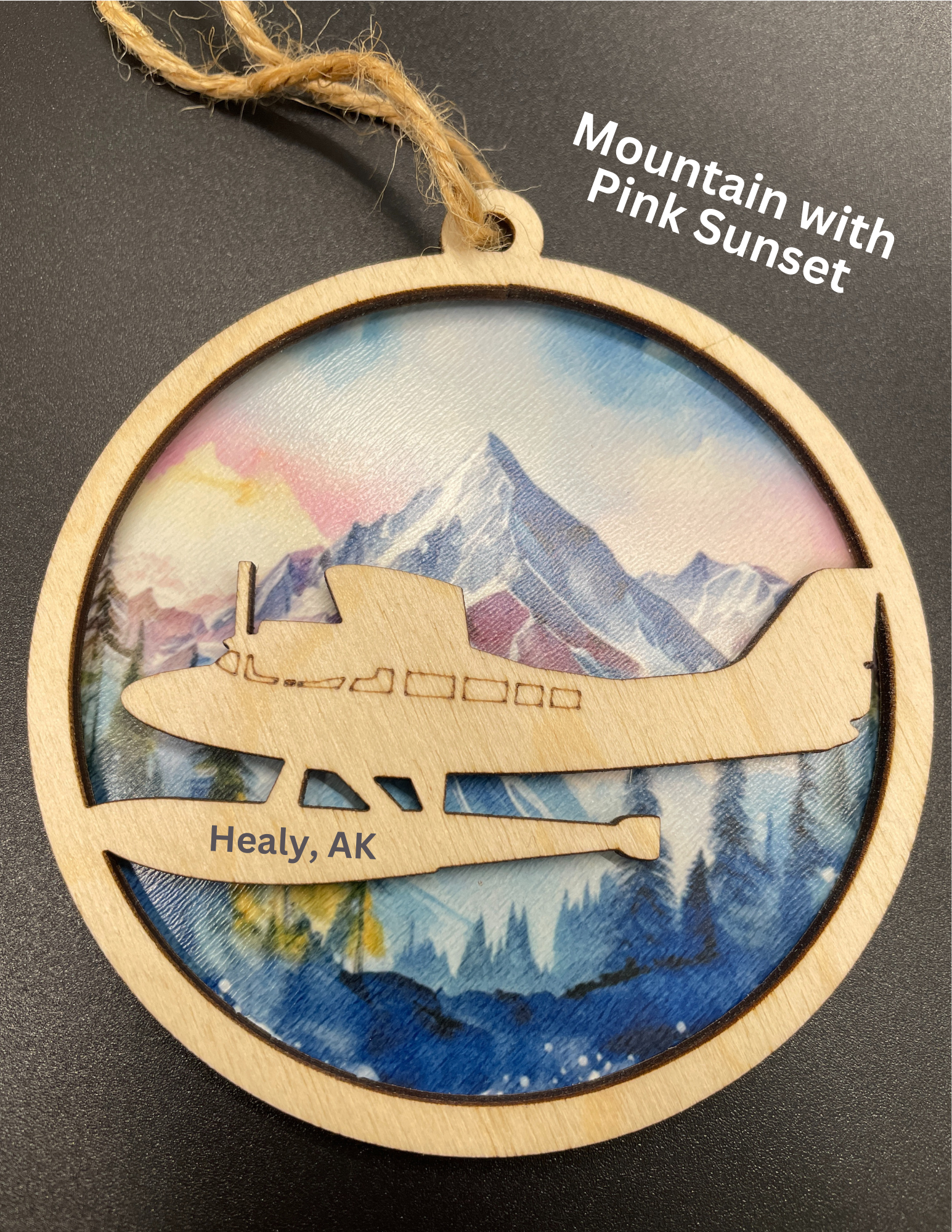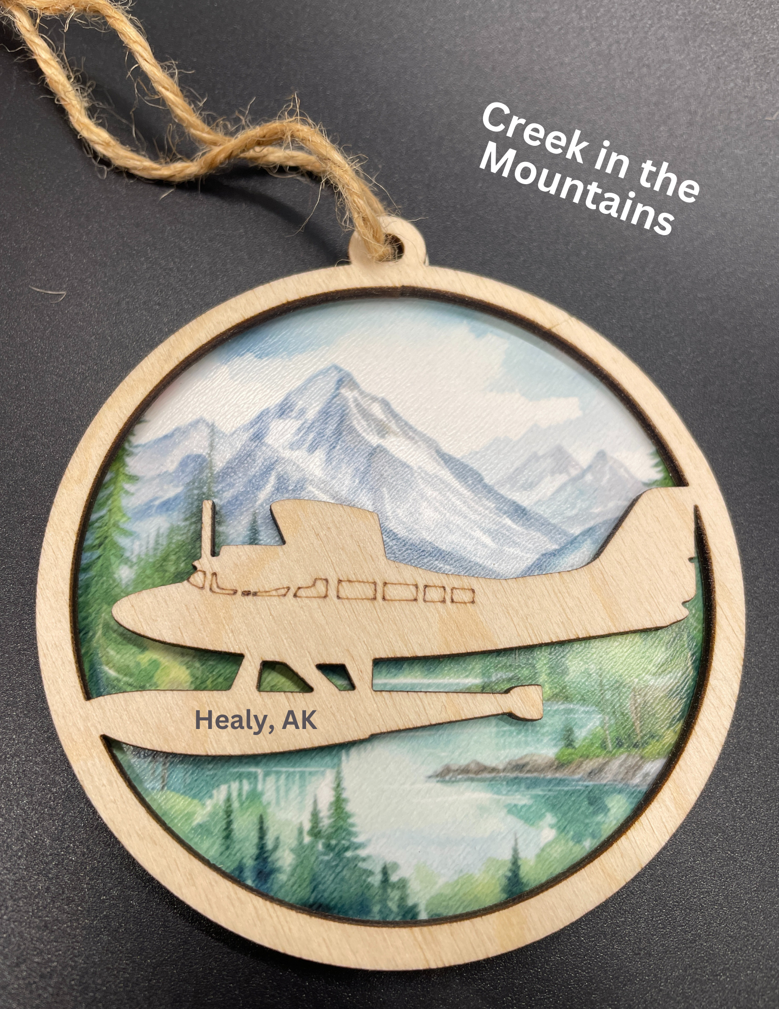 Two-Layer ornament featuring a float plane on your choice of background.
