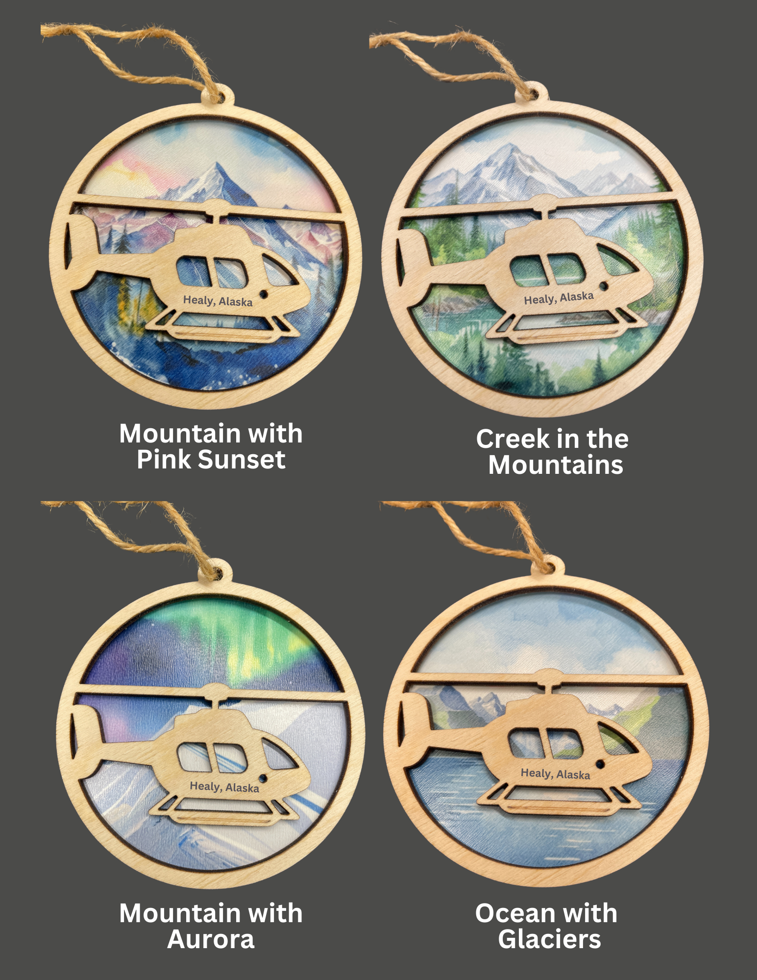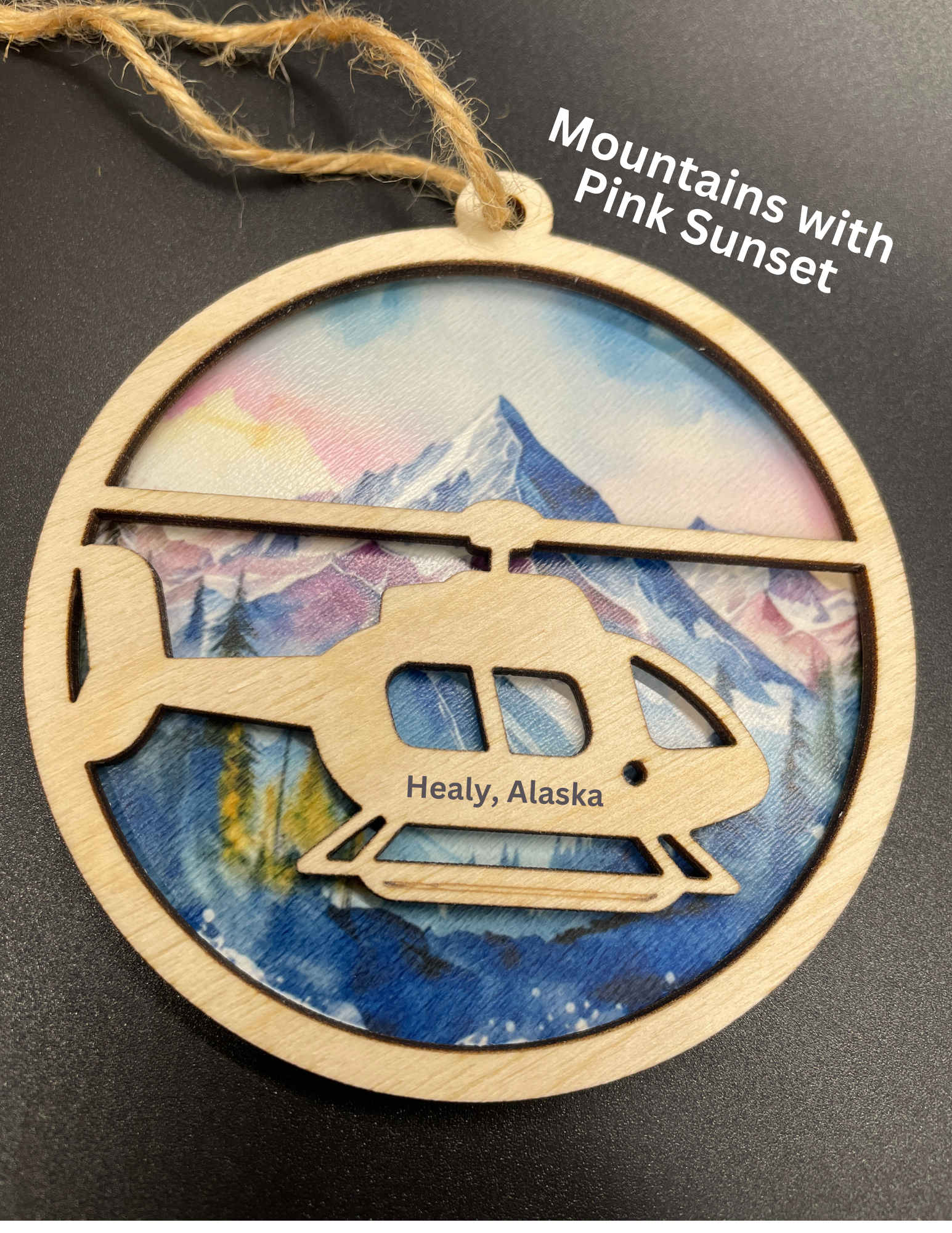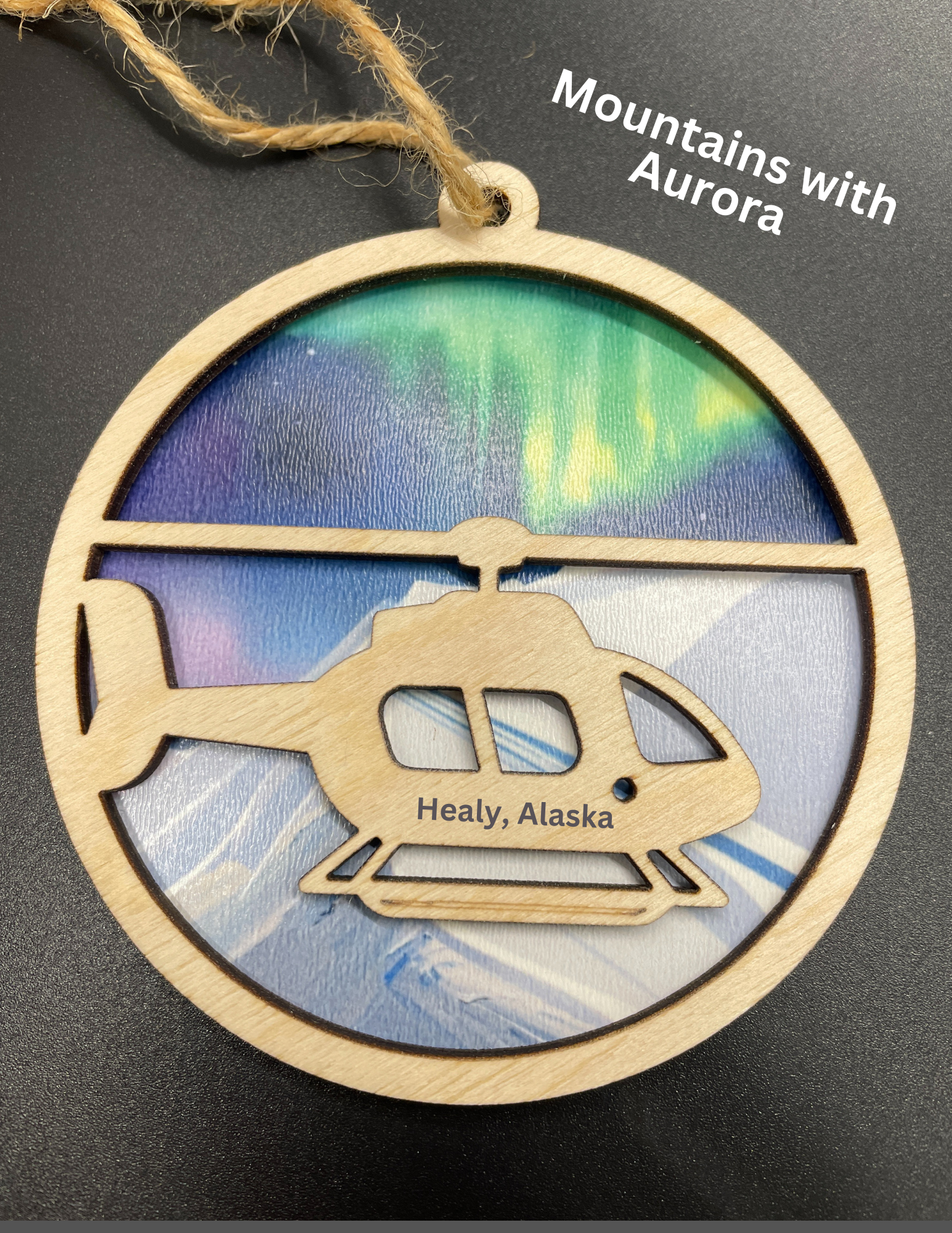 Two-Layer ornament featuring a helicopter on your choice of background.